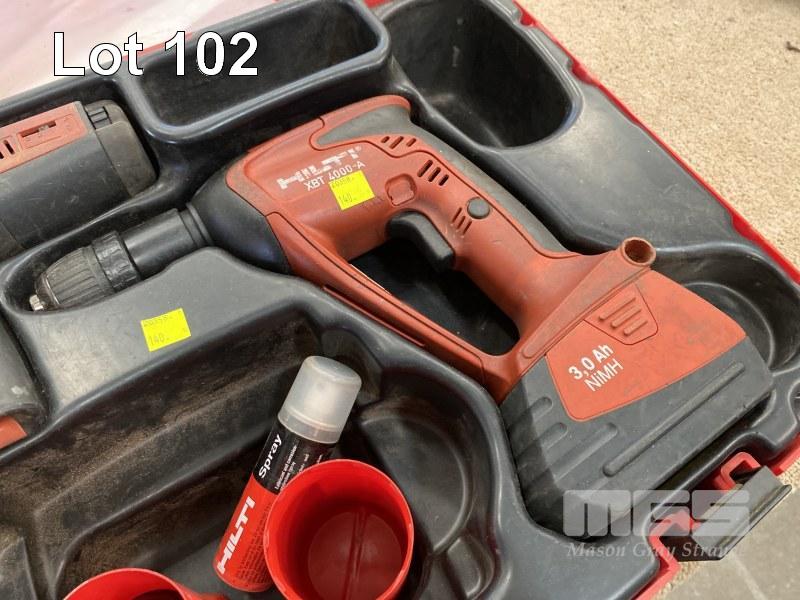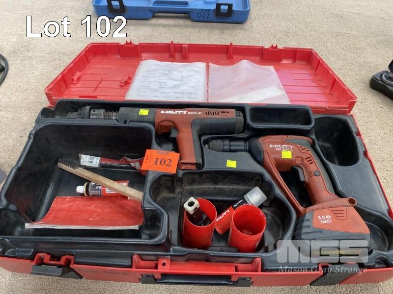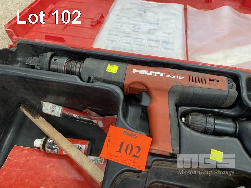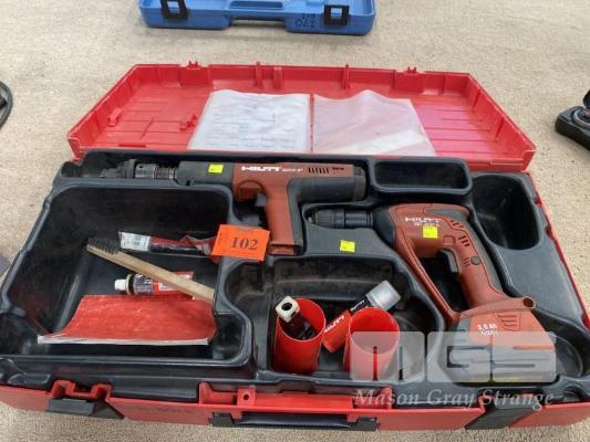 EXPLOSIVE FASTENER GUN, HILTI MOD: DX351BT WITH CORDLESS DRILL, HILTI XBT4000-A 1 x BATTERY, NO CHARGER IN CARRY CASE