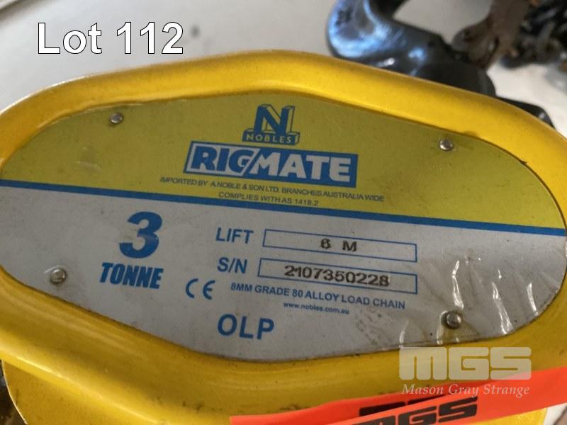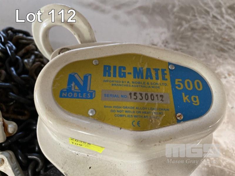 2 x CHAIN BLOCK HOISTS, NOBLES RIG MATE 3 TONNE x 6m & 500kg x 3m