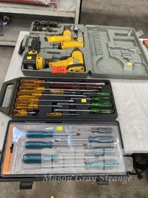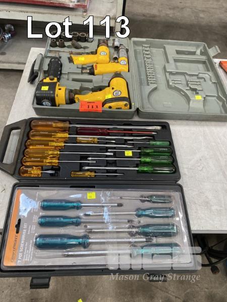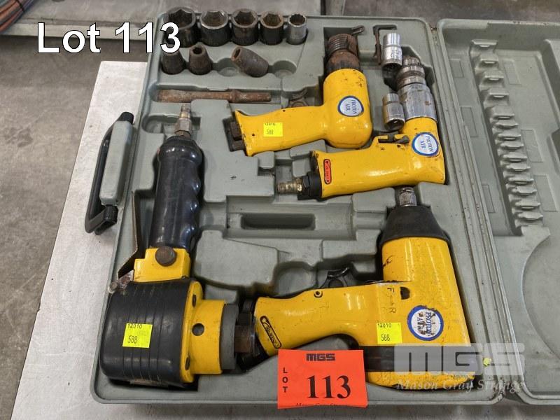 PNEUMATIC TOOL SET, PROTON AIR, INCLUDING IMPACT DRIVER, DISC SANDER, DRILL, IMPACT CHISEL & BITS IN CARRY CASE WITH 2 x SCREWDRIVER SETS