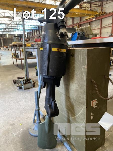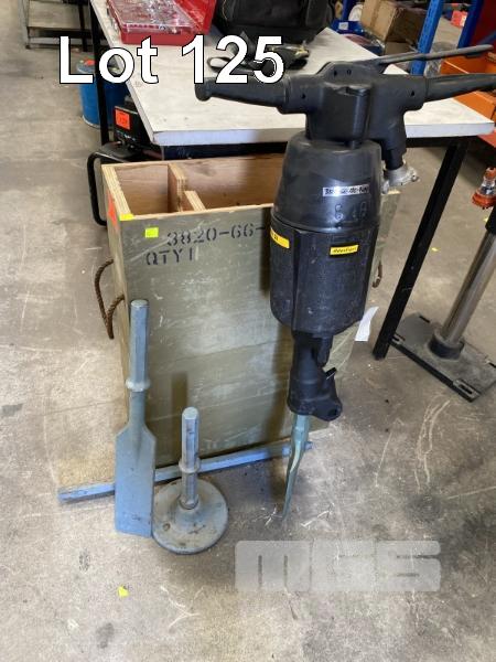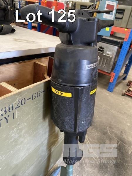 JACKHAMMER, ATLAS COPCO MOD: TEX215 PNEUMATIC WITH ROCK BRAKER, SPADE & RAMMER ATTACHMRNTS NOTE: CRACKS IN BOTTOM PLASTIC SHROUD