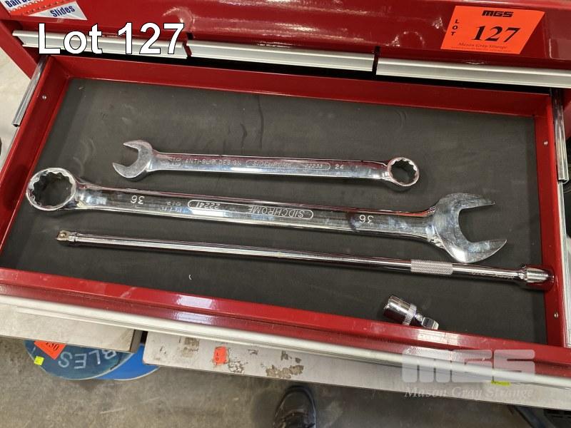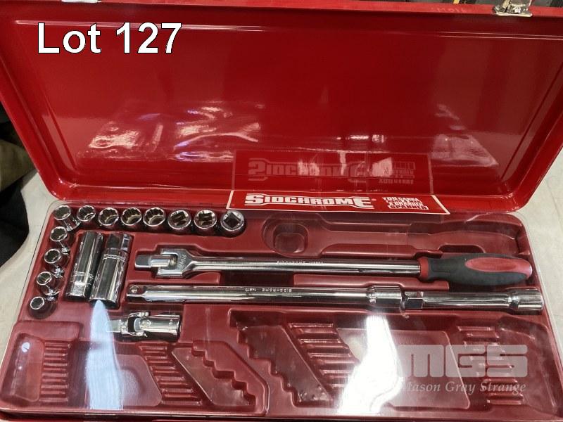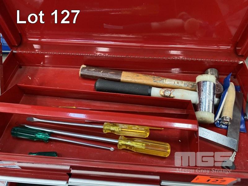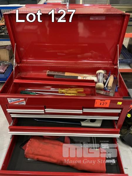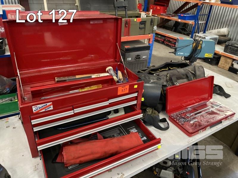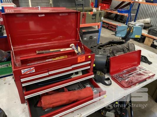 TOOL DRAWER UNIT, JBS, 6 DRAWER WITH SIDCHROME SPANNER & SOCKET SETS, ASSORTED HAND TOOLS, AUTO TINT WELDING HELMET & TOOL BAG