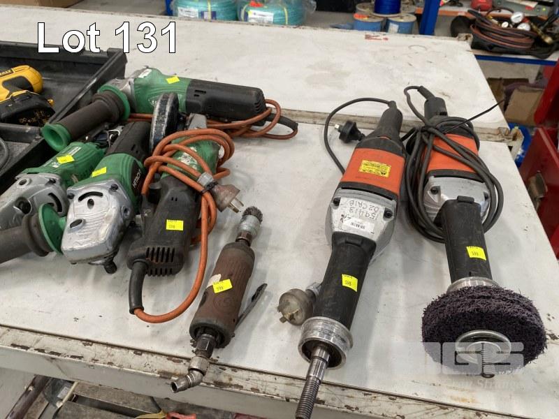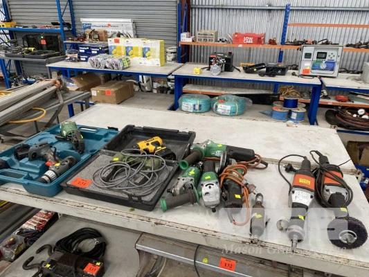ASSORTED POWER TOOLS, INCLUDING DRILLS, ANGLE GRINDERS, STRAIGHT GRINDERS, BEARING NEATER, ETC, ALL FAULTS 1 x SHELF