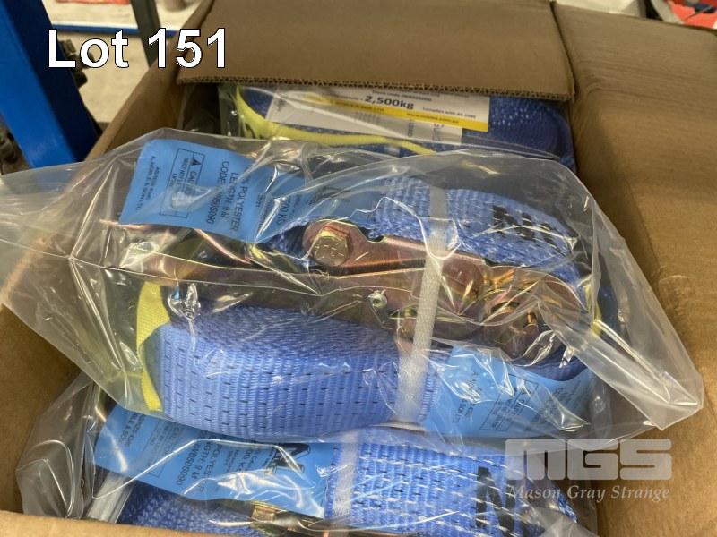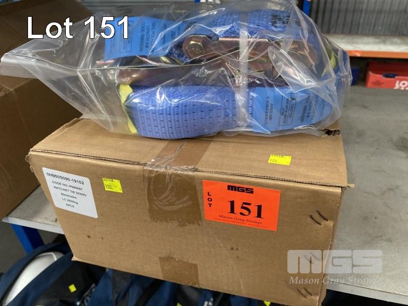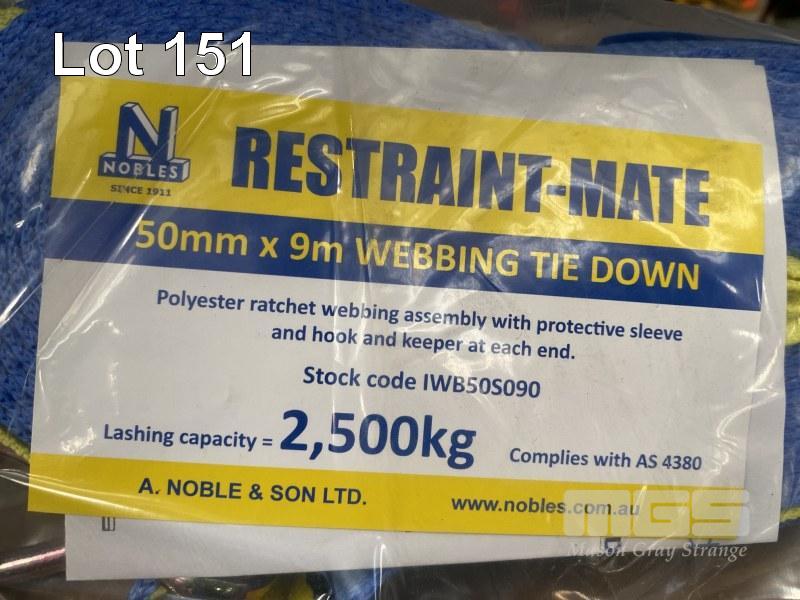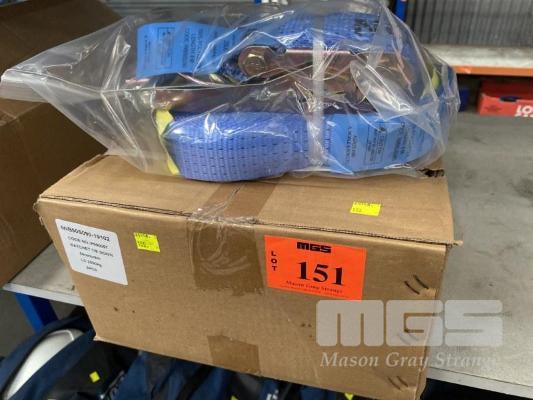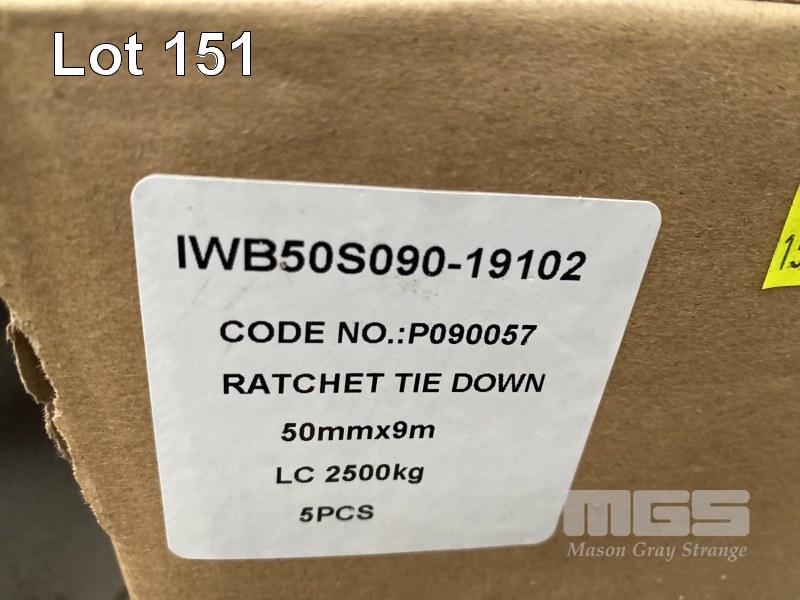 5 x RATCHET STRAPS, BOBLES, RESTRAINT MATE 50mM x 9m WEDDBINE TIE DOWN WITH RATCHET CAP: 2,500kg AS NEW 1 x BOX