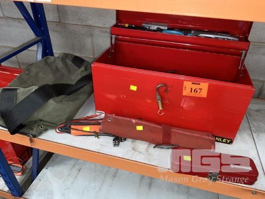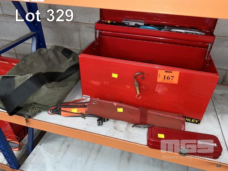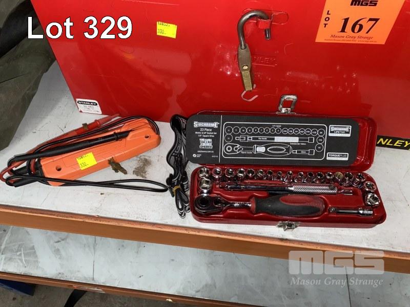 TOOL BOX, STANLEY WITH MULTIMETER, KLEIN TOOLS, SIDCHROME 14 PIECE SPANNER SET, ASSORTED HAND TOOLS & SIDCHROME SOCKET SET, 1/4" DRIVE, ETC