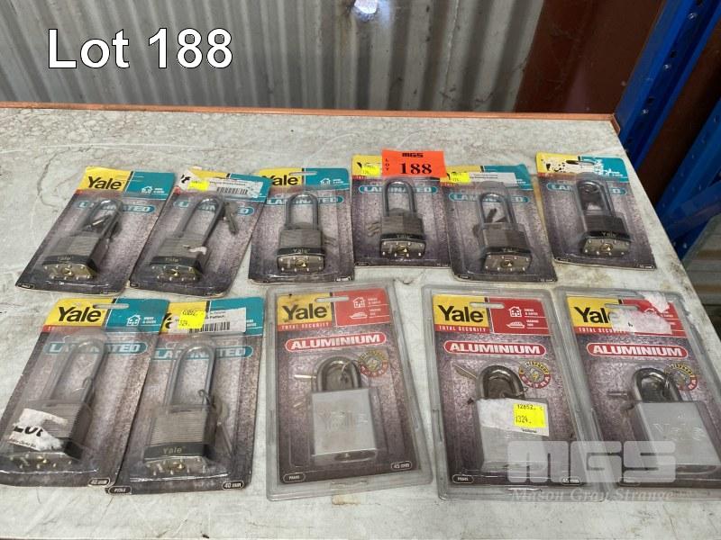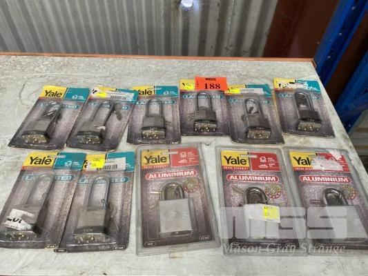 11 x YALE PADLOCKS, LONG SHAFT, STEEL & ALLOY