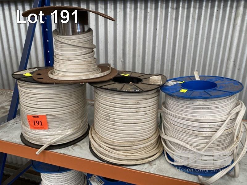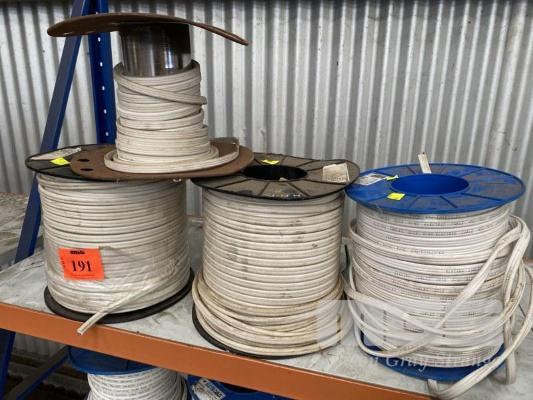 2 x SPOOLS DUAL CORE PVC SHEATHED ELECTRICAL CABLE, 1 x SPOOL SRF3025V ELECTRICAL CABLE & 1 x SPOOL TRIPLE CORE PVC SHEATHED ELECTRICAL CABLE, 1/4 FULL