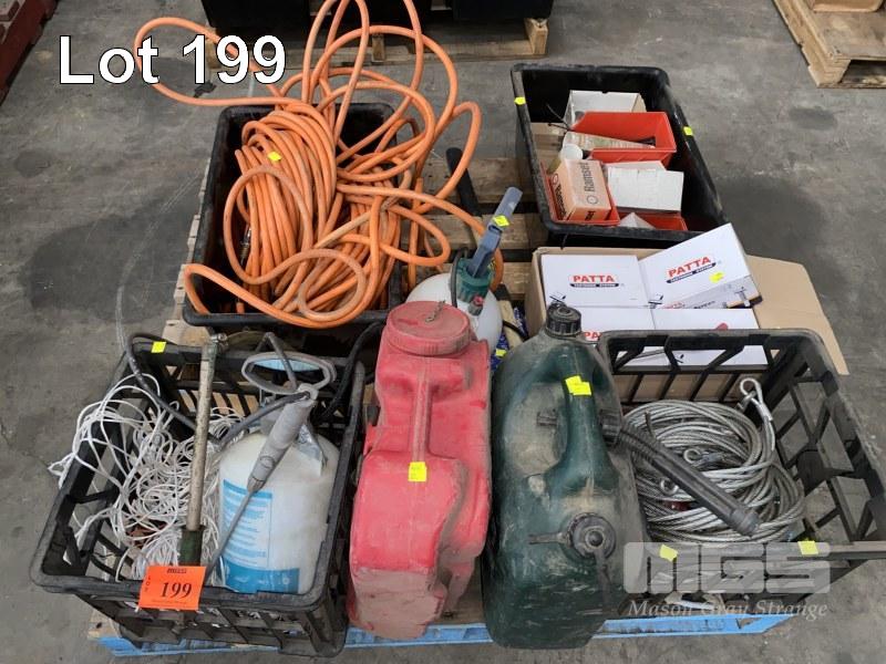 AIR HOSE, COMPAIR ORANGE, SPRAY UNITS, WIRE ROPE, 2000 (APPROX) x SELF DRILLING SCREWS, 1 x PALLET