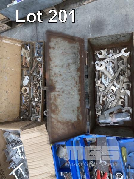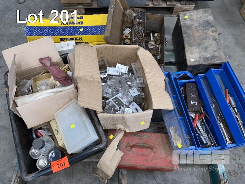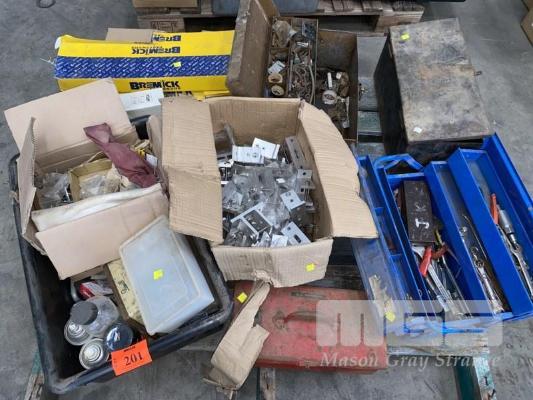 3 x TOOL BOXES & CONTENTS ASSORTED HAND TOOLS, SPANNERS, SOCKETS, ETC, ALUMINIUM BRACKETS, FASTENERS, SCREWS, TOOLS, 1 x PALLET