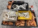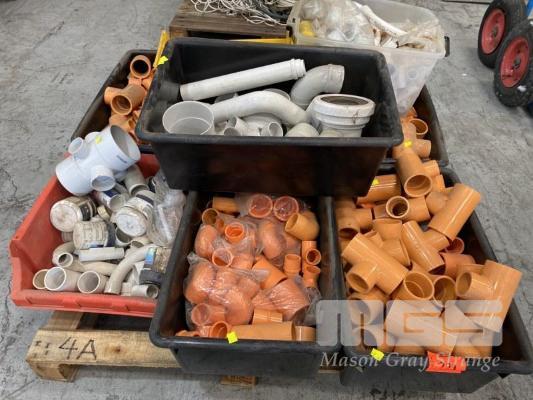 ASSORTED PVC PIPE FITTINGS , INC. ELBOWS & 'T' PIECES, ADAPTORS, JOINTS, ETC. 8 x TUBS, (1 x PALLET)