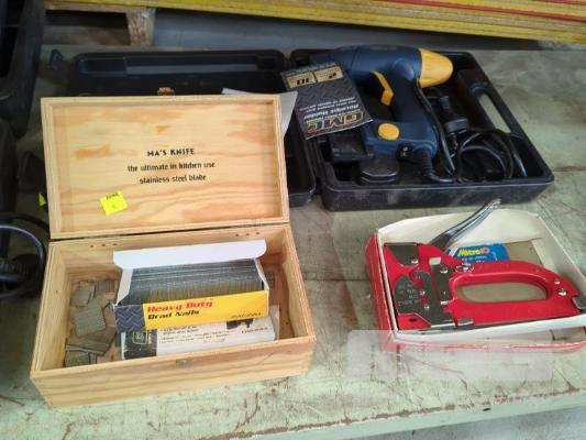 GMC ELECTRIC, ASSORTED BRAD NAILS AND ZENITH STAPLE GUN.