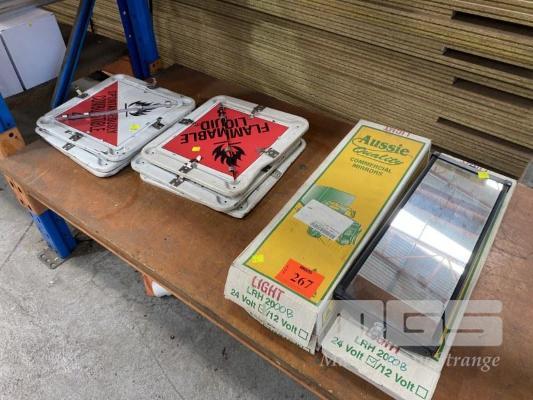 3 x TRUCK SIDE MIRRORS, AUSSIE QUALITY WITH LIGHTS, 24V & 6 x MULTI FLIP TRUCK HAZARD SIGNS,