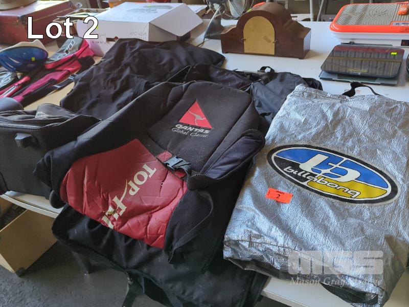 ASSORTED SOFT TRAVEL BAGS INCLUDING SUIT BAG, SURFBOARD BAG, BODYBOARD BAG AND GOLF BAG
