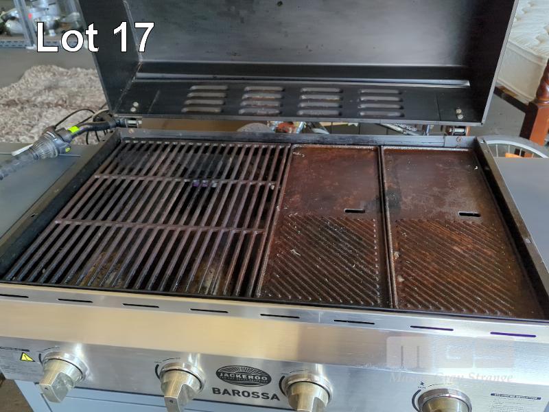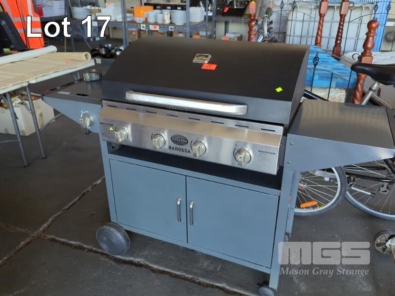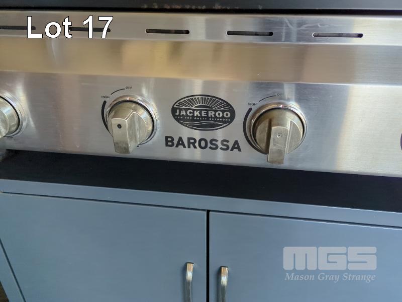 JACKAROO "BAROSSA" 4-BURNER HOODED BARBEQUE WITH SIDE BURNER.