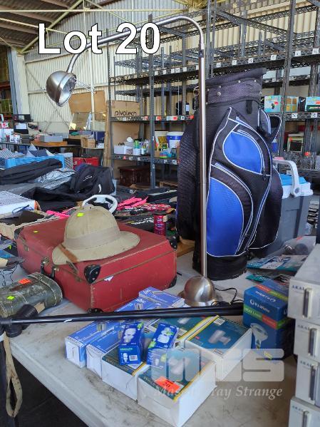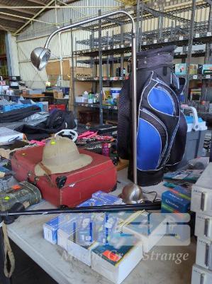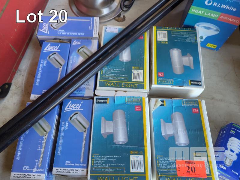 TABLE LAMP, ASSORTED WALL LIGHTS AND POLE LIGHTS.