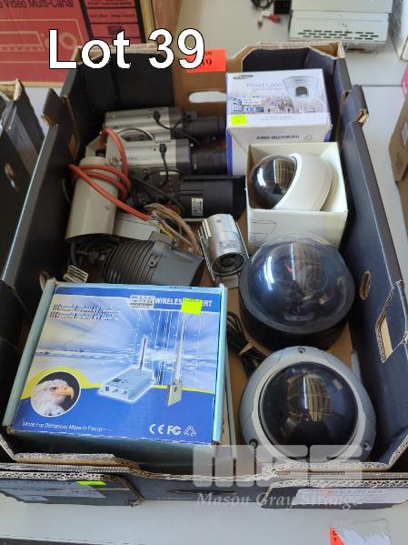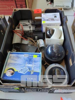 ASSORTED SECURITY CAMERAS, WIRELESS TRANSMITTERS, I/R LAMPS, 1 x TRAY