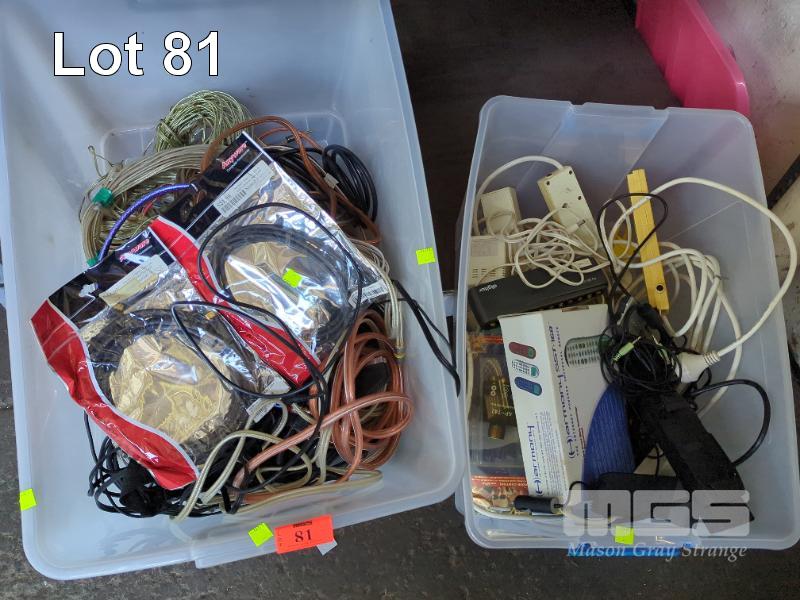 AV CABLES & OTHER ASSORTED ELECTRICAL (2 X TUBS)