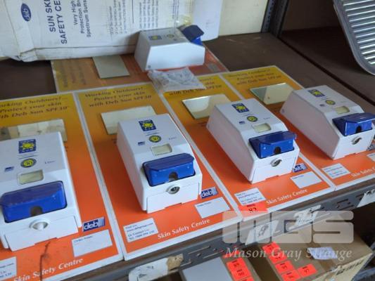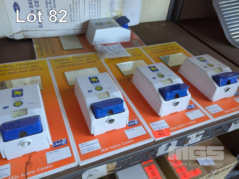 5 X WALL MOUNTED "SKIN SAFETY CENTRE" SUN SCREEN DISPENSING STATIONS.
