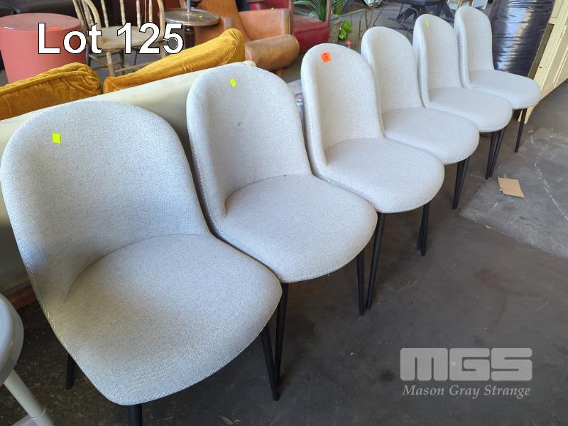 6 X PADDED FABRIC DINING CHAIRS IN GREY