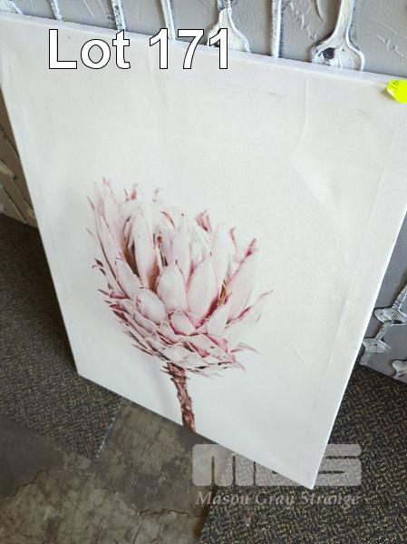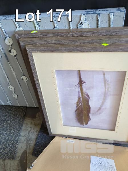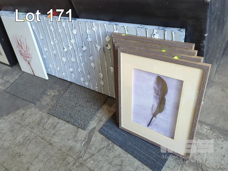 6 X PIECES WALL ART 1 @ 172 X 60 CM - STRETCHED CANVAS ABSTRACT 1 @ 45 X 60 CM W H - STRETCHED CANVAS FLOWER 4 @ 48 X 59 CM - FRAMED & GLAZED ABSTRACT FEATHERS