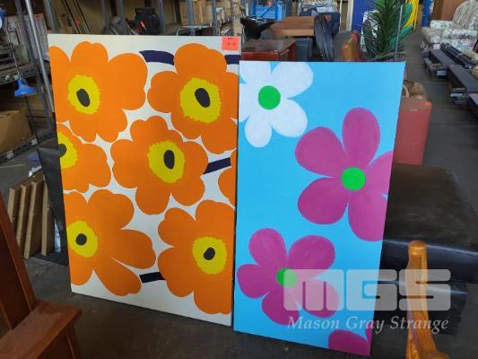 2 X PIECES OF ORIGNAL ARTWORK - FLOWERS ON STRETCHED CANVAS