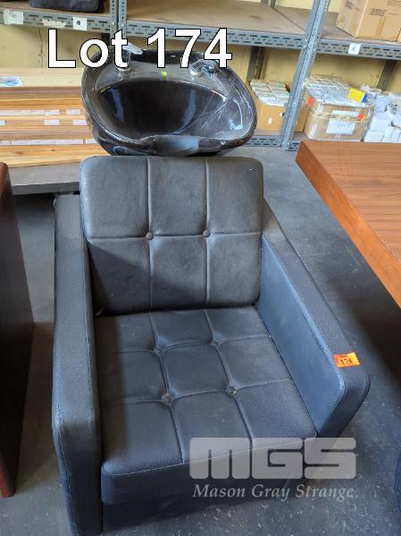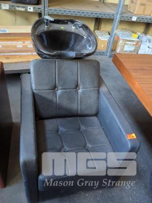 HAIR WASHING STATION, BLACK VINYL UPHOLSTERED BLACK BASIN & TAPWARE