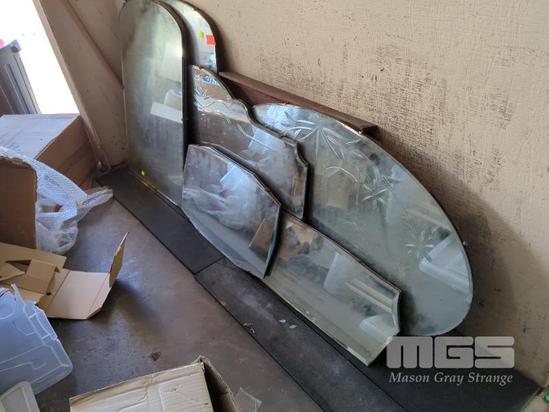 7 X ASSORTED VINTAGE MIRRORS. INCLUDES ETCHED WALL MIRRORS, DRESSER MIRRORS ETC