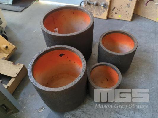 SET OF 4 X CONTEMPORARY PLANTER POTS. COLOUR CORTEN. NEW, NESTED PACKED. 1 @ 50 CM DIAMETER X 47 CM HEIGHT. 1 @ 42 CM DIAMETER X 40 CM HEIGHT. 1 @ 34 CM DIAMETER X 32 CM HEIGHT. 1 @ 27 CM DIAMETER X 25 CM HEIGHT.