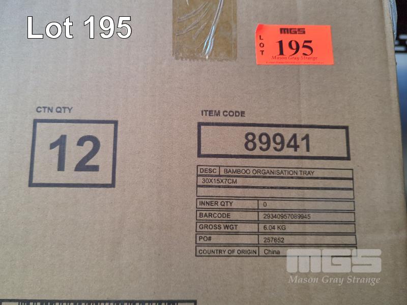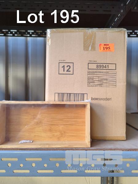 2 X CARTONS OF 12 SWEDISH STYLE BAMBOO ORGANISATION TRAYS (30 X 15 X 7 CM W D H - 24 TRAYS IN TOTO)