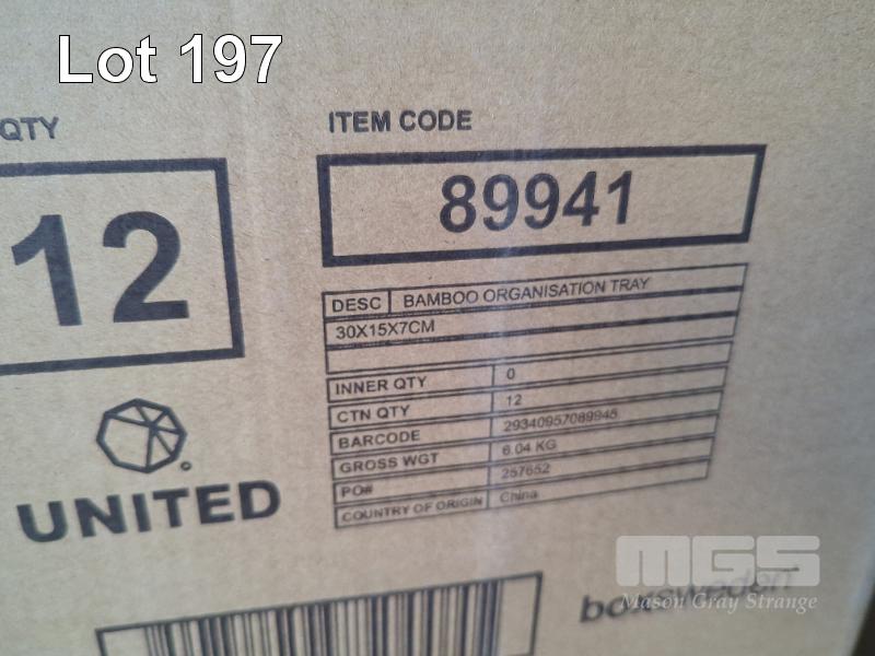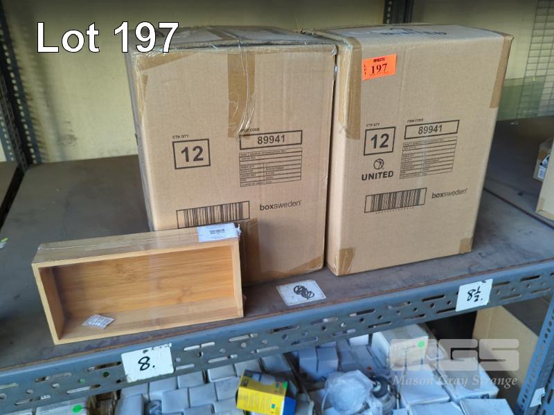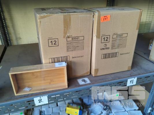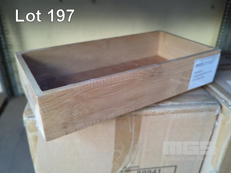 2 X CARTONS OF 12 SWEDISH STYLE BAMBOO ORGANISATION TRAYS (30 X 15 X 7 CM W D H - 24 TRAYS IN TOTO)