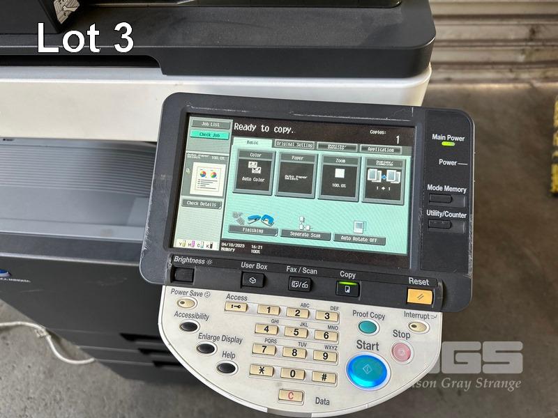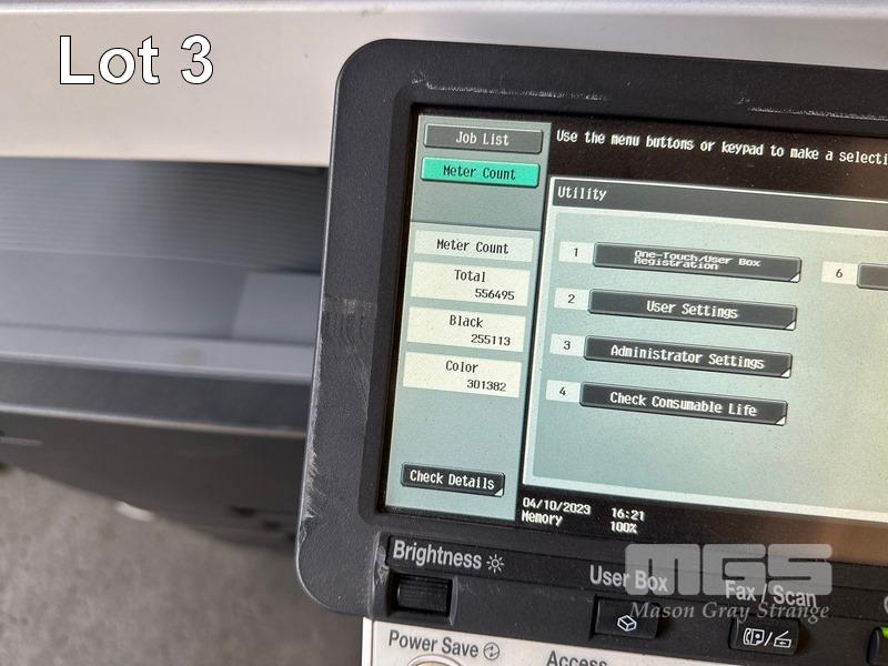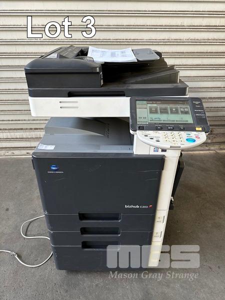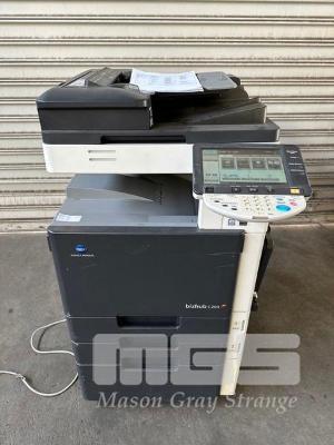 PHOTOCOPIER, KONICA MINOLTA bizhub C203 COLOUR DIGITAL, ADF, PRINTER USB & NETWORK PORTS, 301,382 COLOUR & 255,113 B&W COPIES SHOWING (TEST PAGE ATTACHED)