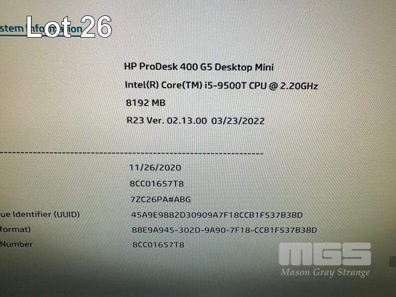 DESKTOP PC, HP PRODESK 400 G5 MINI, CORE i5 9500T (9TH GEN) @ 2.2GHz, 8GB DDR4 RAM, 256GB NVMe M.2 SSD, WINDOWS 11 PRO INSTALLED, KEYBOARD, MOUSE & POWER SUPPLY S/N:8CC01657TB