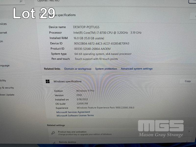 ALL-IN-ONE PC, DELL OPTIPLEX 7460, CORE i7 8700 (8TH GEN) @ 3.2GHz, 16GB DDR4 RAM, 512GB NVMe M.2 SSD, INBUILT 23.8" IPS TOUCHSCREEN (1920x1080), INTEL HD VIDEO, WEBCAM, 5 x USB, 1 x USB-C, WINDOWS 11 PRO INSTALLED, KEYBOARD & MOUSE S/N:39XBNX2