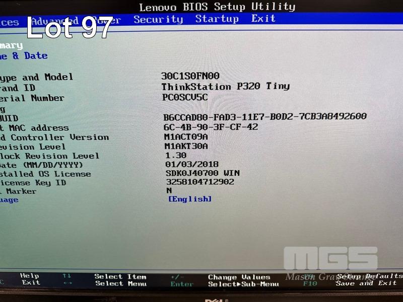 DESKTOP PC, LENOVO THINKSTATION P320 TINY WORKSTATION, CORE i5 7500T (7TH GEN) @ 2.7GHz, 16GB DDR4 RAM, 256GB NVMe M.2 SSD, 2GB NVIDIA QUADRO P600 VIDEO (4mDP), Wi-Fi, BLUETOOTH, WINDOWS 10 HOME INSTALLED & POWER SUPPLY (135W) (NO KEYBOARD, NO MOUSE) S/N:PC0SCV5C