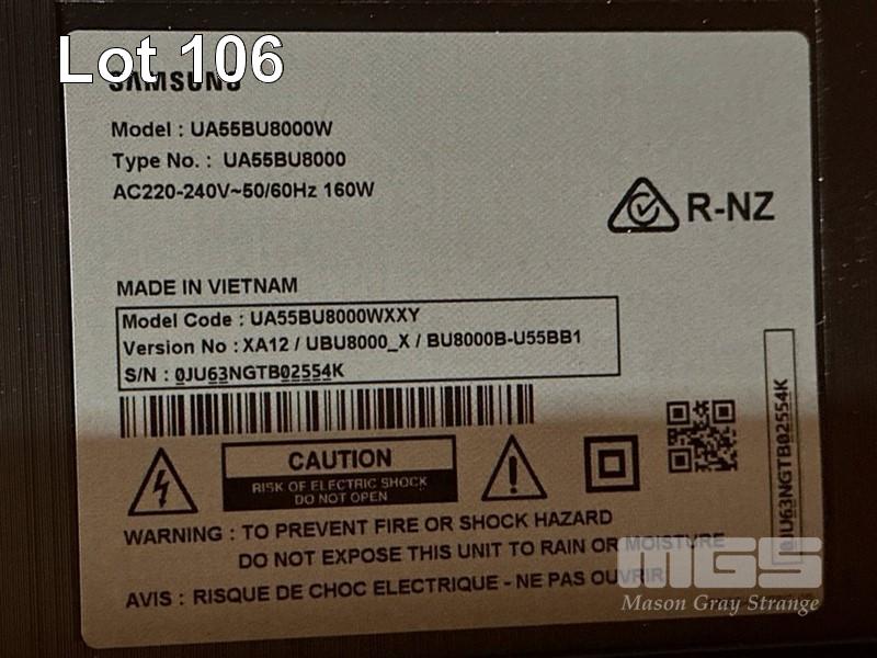 SAMSUNG 55" UHD 4K SMART TV, MODEL UA55BU8000 (NO REMOTE, NO STAND) S/N:0JU63NGTB02554K