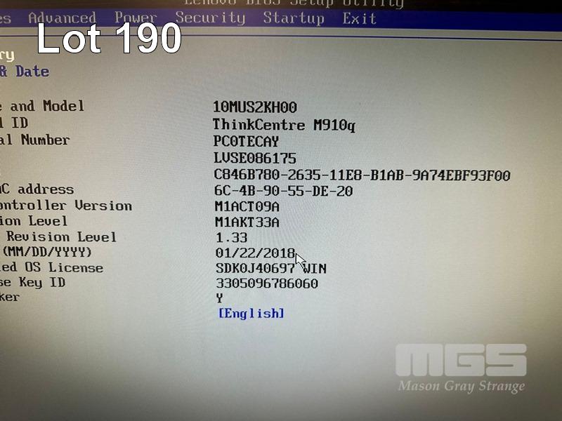 DESKTOP PC, LENOVO THINKCENTRE M910q TINY, CORE i5 7500T (7TH GEN) @ 2.7GHz, 8GB DDR4 RAM, 500GB SATA HDD, DVD-RW, Wi-Fi (NO ANTENNA), WINDOWS 10 PRO INSTALLED & POWER SUPPLY (NO KEYBOARD, NO MOUSE) S/N:PC0TECAY