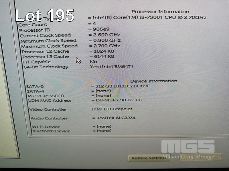 DESKTOP PC, DELL OPTIPLEX 7050 MICRO, CORE i5 7500T (7TH GEN) @ 2.7GHz, 8GB DDR4 RAM, 512GB SSD, INTEL HD VIDEO, 1 x USB-C, 5 x USB, WINDOWS 10 HOME INSTALLED & POWER SUPPLY (65W) (NO KEYBOARD, NO MOUSE) S/N:2G6P6Q2