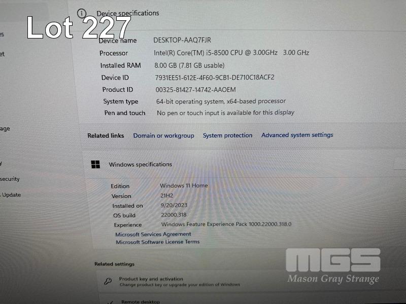 ALL-IN-ONE PC, DELL OPTIPLEX 7460, CORE i5 8500 (8TH GEN) @ 3GHz, 8GB DDR4 RAM, 512GB NVMe M.2 SSD, INBUILT 23.8" FHD WIDESCREEN (1920x1080), INTEL HD VIDEO, WEBCAM, 5 x USB, 1 x USB-C, WINDOWS 11 HOME INSTALLED, KEYBOARD & MOUSE S/N:FC0DHY2