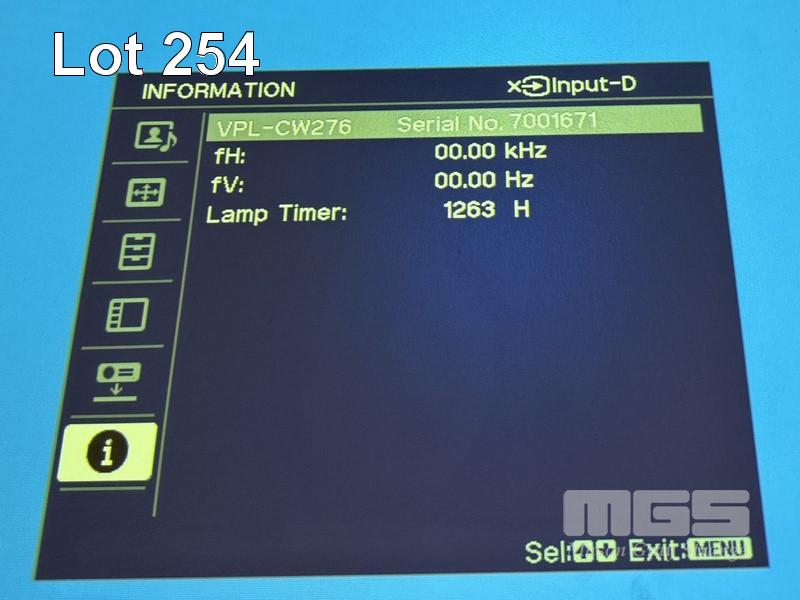 PROJECTOR, SONY VPL-CW276 3LCD WXGA, 5,100 LUMENS, HDMI INPUT, 1,263 HOURS SHOWING (NO REMOTE) S/N:7001671