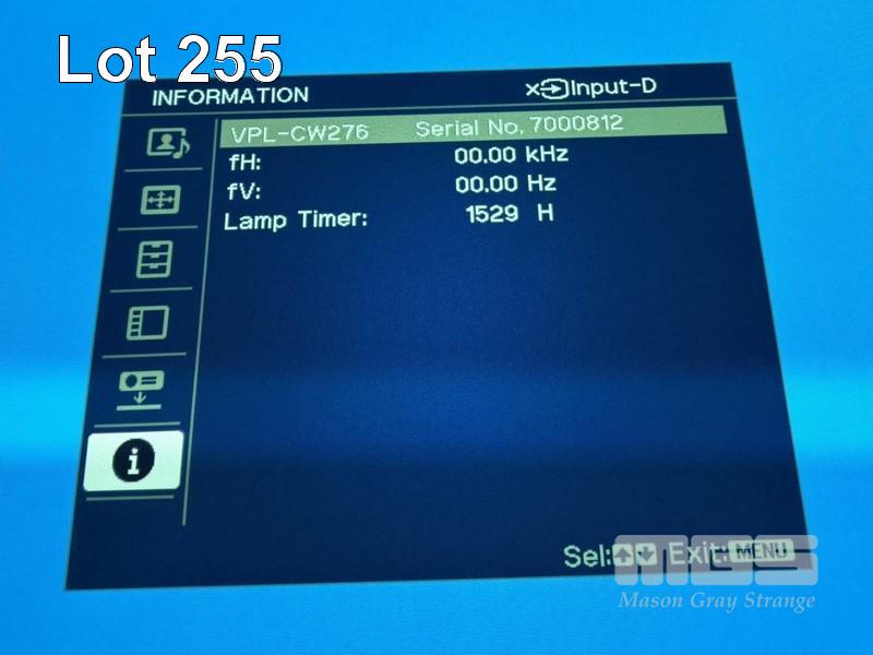PROJECTOR, SONY VPL-CW276 3LCD WXGA, 5,100 LUMENS, HDMI INPUT, 1,529 HOURS SHOWING (NO REMOTE) S/N:7000812