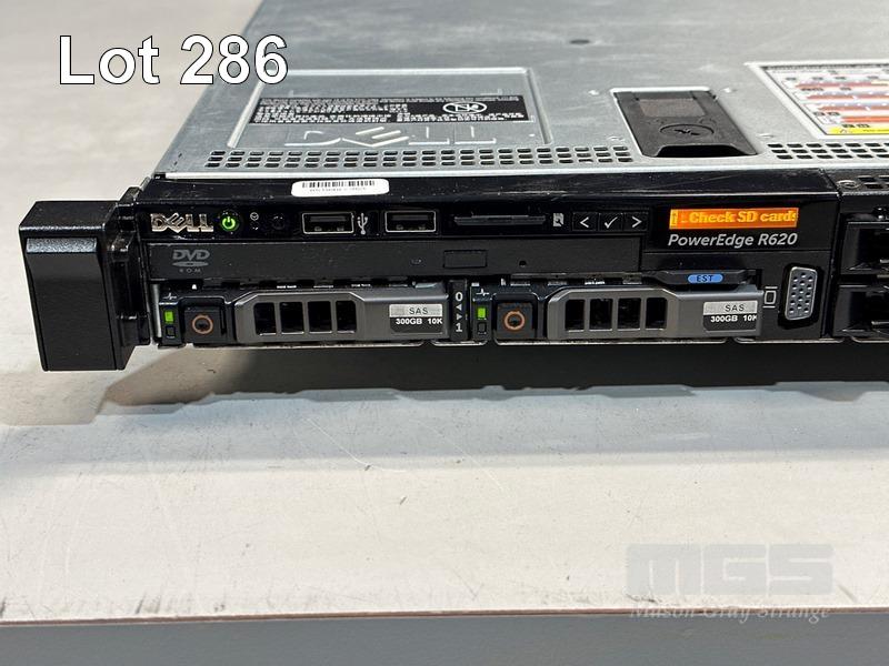 RACKMOUNT SERVER, DELL POWEREDGE R620, 1U, 2 x XEON E5-2650 v2 @ 2.6GHz, 128GB ECC DDR3 RAM, 2 x 300GB SAS HDD, DVD-ROM, 2 x 750W PSU (NO CABLES) (NOTE: MESSAGE CHECK SD CARD) S/N:2XBGH32