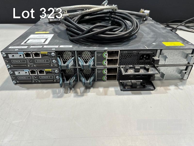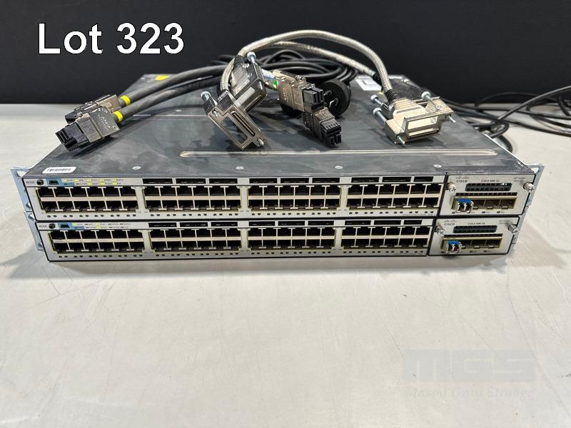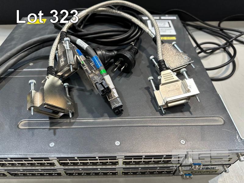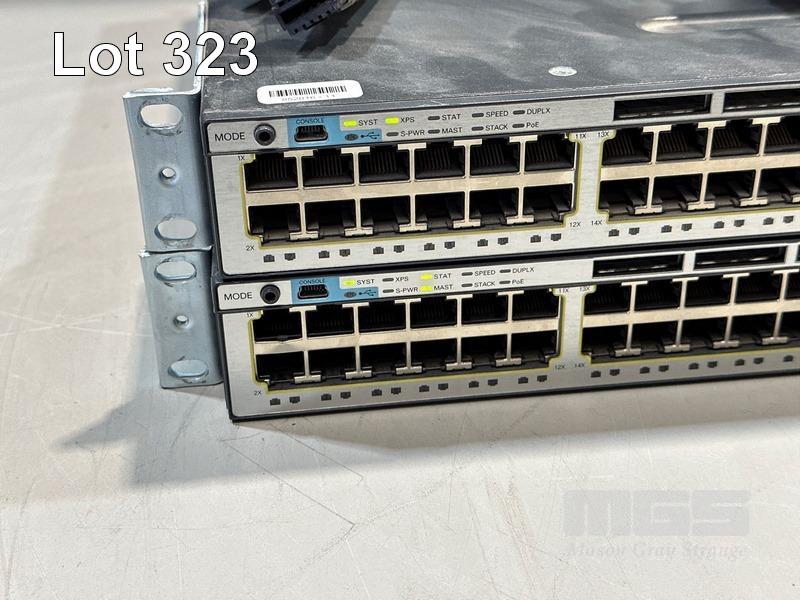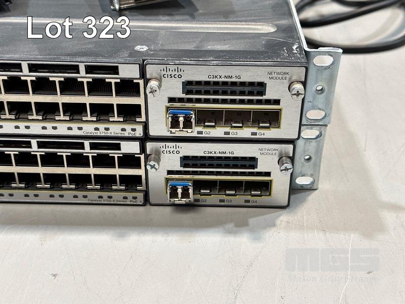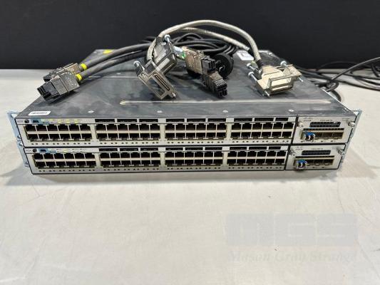 2 x CISCO CATALYST 3750-X SERIES 48-PORT SWITCHES, WS-C3750X-48P-S V03 EACH WITH C3KX-NM-1G NETWORK MODULE, STACK CABLES & IEC-C15 NOTCH POWER CABLES S/N:FDO1632R148, FDO1631Z0TT