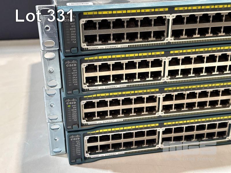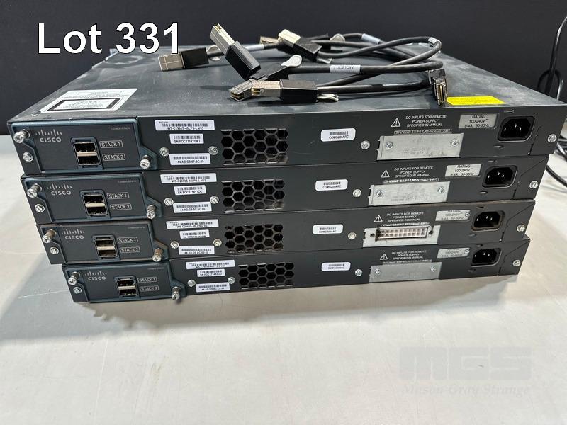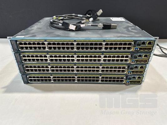 4 x CISCO CATALYST 2960-S SERIES PoE+ 48-PORT SWITCHES, WS-C2960S-48LPS-L V03 WITH C2960S-STACK MODULES & STACKING CABLES S/N:FOC1714X0MJ, FOC1714Y1DC, FOC1714Y10W, FOC1714X0QD