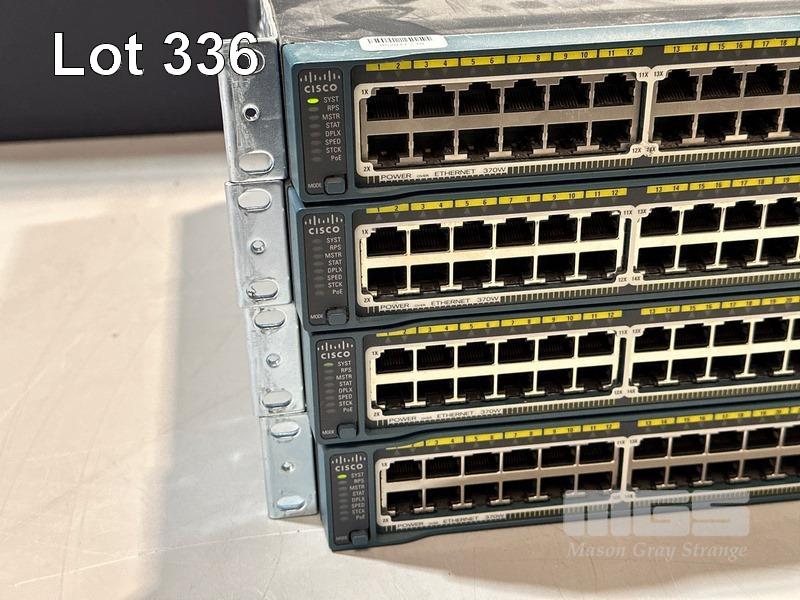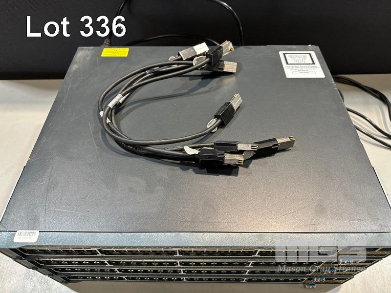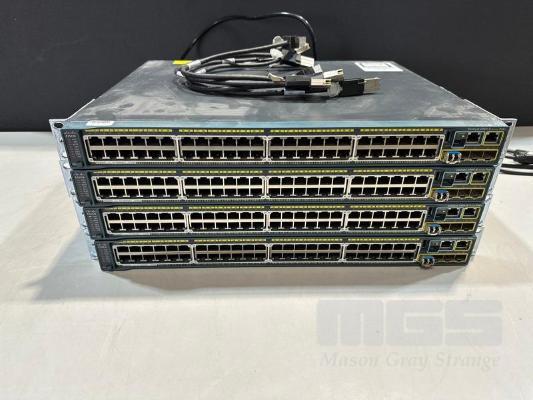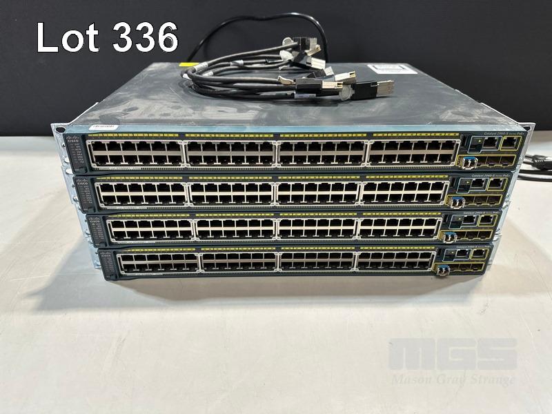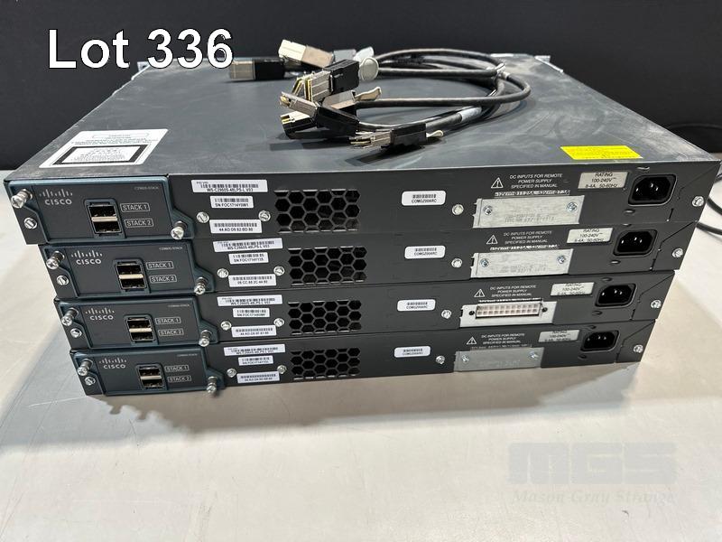 4 x CISCO CATALYST 2960-S SERIES PoE+ 48-PORT SWITCHES, WS-C2960S-48LPS-L V03 WITH C2960S-STACK MODULES & STACKING CABLES S/N:FOC1714Y0W1, FOC1714Y13S, FOC1714X0MF, FOC1714Y1DL