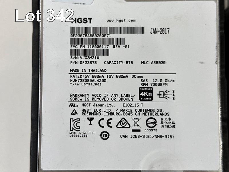 8 x HGST 8TB SAS (12Gbps) HARD DRIVES, 0F23678, 3.5" WITH CADDIES
