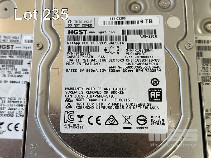8 x HGST 6TB SAS (12Gbps) HARD DRIVES, 0F22881, 3.5" WITH CADDIES