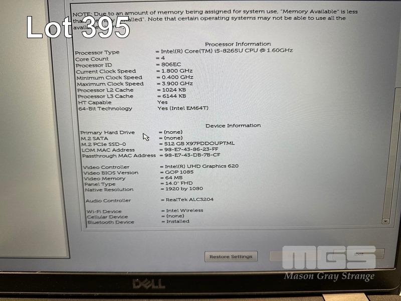 LAPTOP, DELL LATITUDE 5400, CORE i5 8265U (8TH GEN) @ 1.6GHz, 8GB DDR4 RAM, 512GB NVMe M.2 SSD, 14" WIDESCREEN (1920x1080), INTEL UHD GRAPHICS 620, Wi-Fi, BLUETOOTH, WINDOWS 11 HOME INSTALLED & POWER SUPPLY S/N:DRD6ZY2