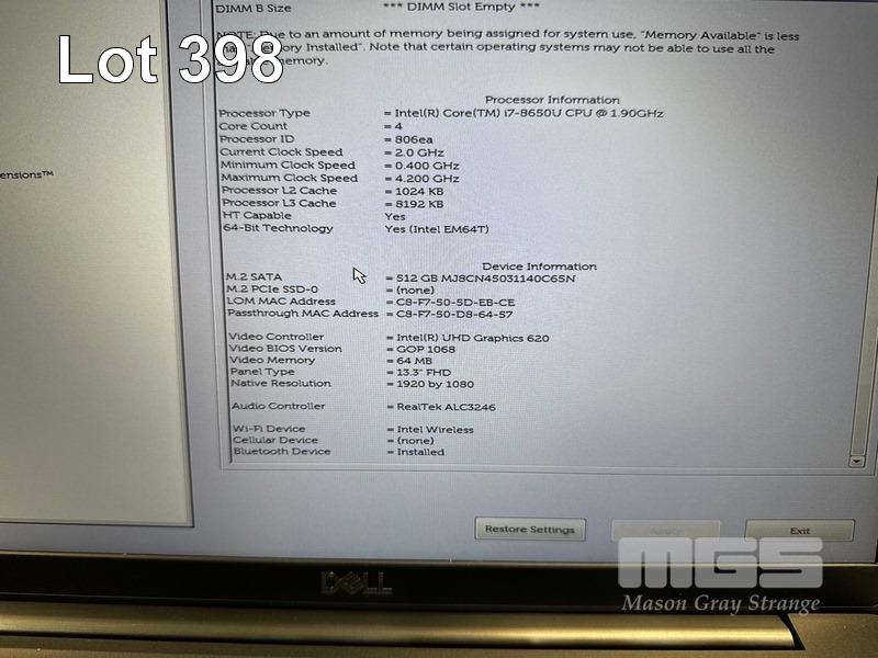 LAPTOP, DELL LATITUDE 7390, CORE i7 8650U (8TH GEN) @ 1.9GHz, 16GB DDR4 RAM, 512GB M.2 SSD, 13.3" WIDESCREEN (1920x1080), INTEL UHD GRAPHICS 620, Wi-Fi, BLUETOOTH, WINDOWS 11 HOME INSTALLED & POWER SUPPLY S/N:HWQNMV2
