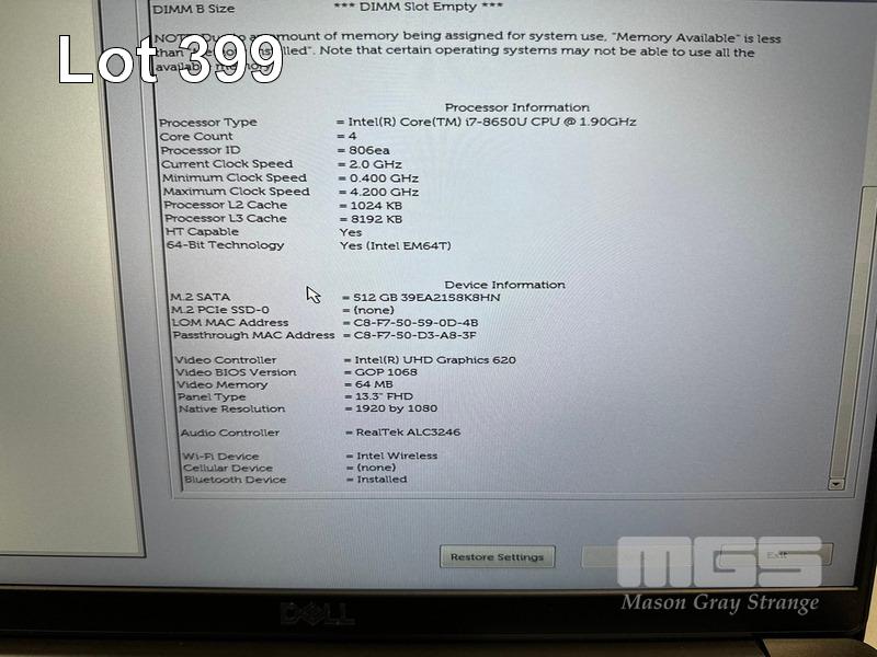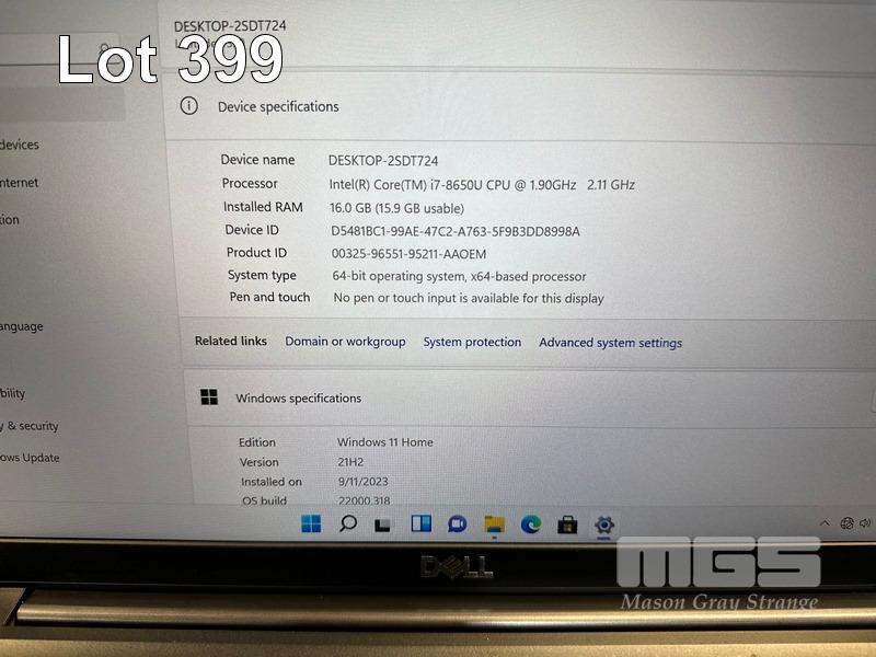 LAPTOP, DELL LATITUDE 7390, CORE i7 8650U (8TH GEN) @ 1.9GHz, 16GB DDR4 RAM, 512GB M.2 SSD, 13.3" WIDESCREEN (1920x1080), INTEL UHD GRAPHICS 620, Wi-Fi, BLUETOOTH, WINDOWS 11 HOME INSTALLED & POWER SUPPLY S/N:BWM1YT2