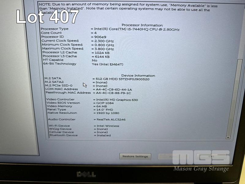 LAPTOP, DELL LATITUDE 5480, CORE i5 7440HQ (7TH GEN) @ 2.8GHz, 16GB DDR4 RAM, 512GB M.2 SSD, 14" WIDESCREEN (1920x1080), INTEL HD GRAPHICS 630, Wi-Fi, BLUETOOTH, WINDOWS 10 HOME INSTALLED & POWER SUPPLY S/N:JWWZPH2
