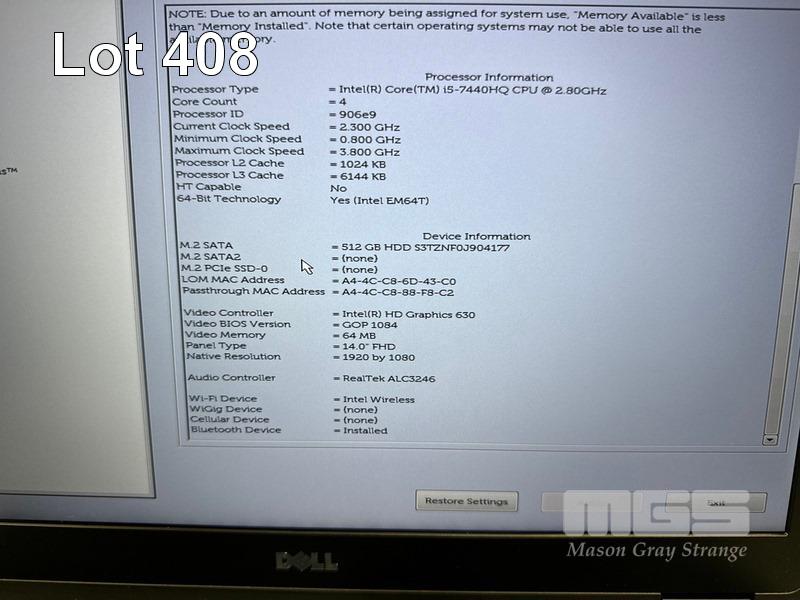 LAPTOP, DELL LATITUDE 5480, CORE i5 7440HQ (7TH GEN) @ 2.8GHz, 16GB DDR4 RAM, 512GB M.2 SSD, 14" WIDESCREEN (1920x1080), INTEL HD GRAPHICS 630, Wi-Fi, BLUETOOTH, WINDOWS 10 HOME INSTALLED & POWER SUPPLY S/N:14CVPH2